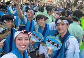 阿波踊りの本場、徳島県のスタッフによる特訓を受けて、「東京高円寺阿波おどり」に参加しています。