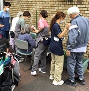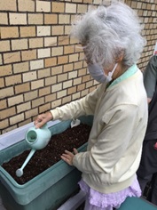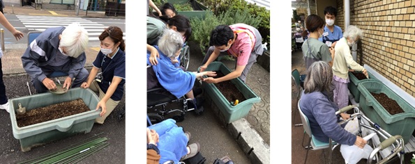 慣れている患者さんは、一人で蒔き、慣れていない患者さんはスタッフと一緒に蒔きました。