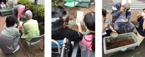 患者さんは、手のひらに配られた植物の種を興味深く見入っていました。