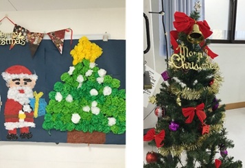 患者さんに喜んでいただこうと、病棟スタッフが一生懸命飾ったホールのクリスマスの飾りをご紹介します。