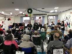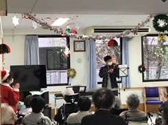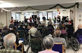 演奏を聴きながら手拍子をしたり、音楽に合わせて歌を口ずさんだり、楽しそうにクリスマス会に参加している患者さんをご覧になり、面会にいらしたご家族も喜ばれていました。