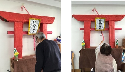 入院中でお参りに行けない患者さんのために、スタッフが頑張って作った立派な鳥居です。