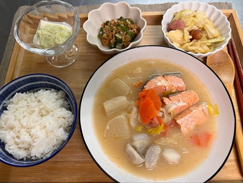 今回の郷土料理は宮城県の「鮭のあら汁風」と「ずんだミルクゼリー」をご紹介します。