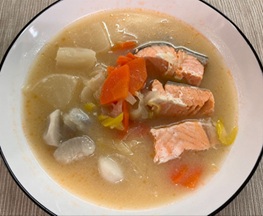 鮭の頭や骨の部分まで使って作るあら汁は、先人の生活の知恵を伝えています。今回は鮭のあらではなく、食べやすい切り身部分を使用します。