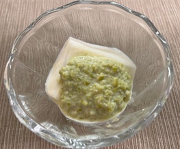 ゆでた枝豆の甘皮をとりのぞき、すり鉢でつぶしたものに砂糖、塩、水で味を調えたものです。