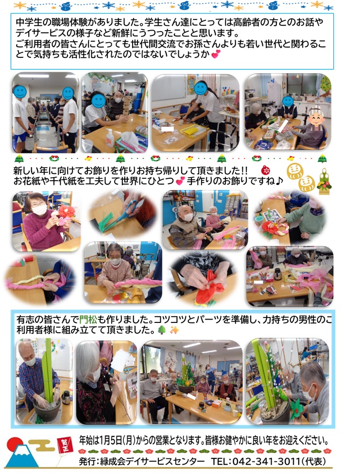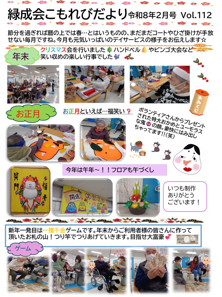 今回のこもれびだよりは、年末年始の活動の様子をまとめました!